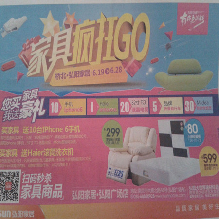 现代快报详细介绍家具疯狂GO,桥北。弘阳家居6.19-6.28